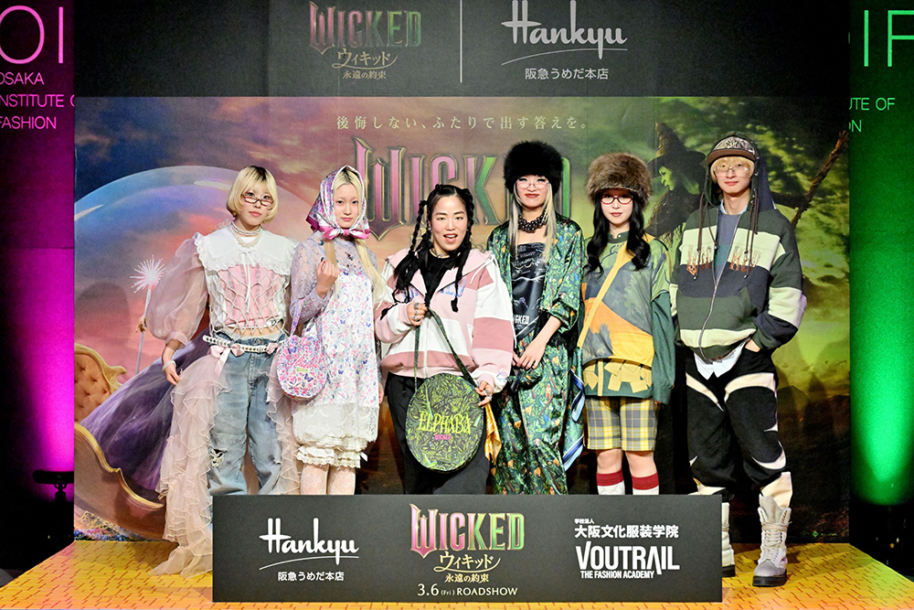 この度、映画『ウィキッド 永遠の約束』の公開を記念し、前作に引き続き百貨店・阪急うめだ本店とのコラボレーションが決定。更に新しい取り組みとして、1946年創立の伝統を誇り、国内外のコンテストで数々の受賞者を輩出し続ける大阪文化服装学院とのコラボレーションし、所属学生10名による『ウィキッド』オリジナルデザインの商品発売が阪急うめだ本店にて決定しました。その一環として、同学院にて『ウィキッド 永遠の約束』オリジナル商品のファッションショーが開催されました!
